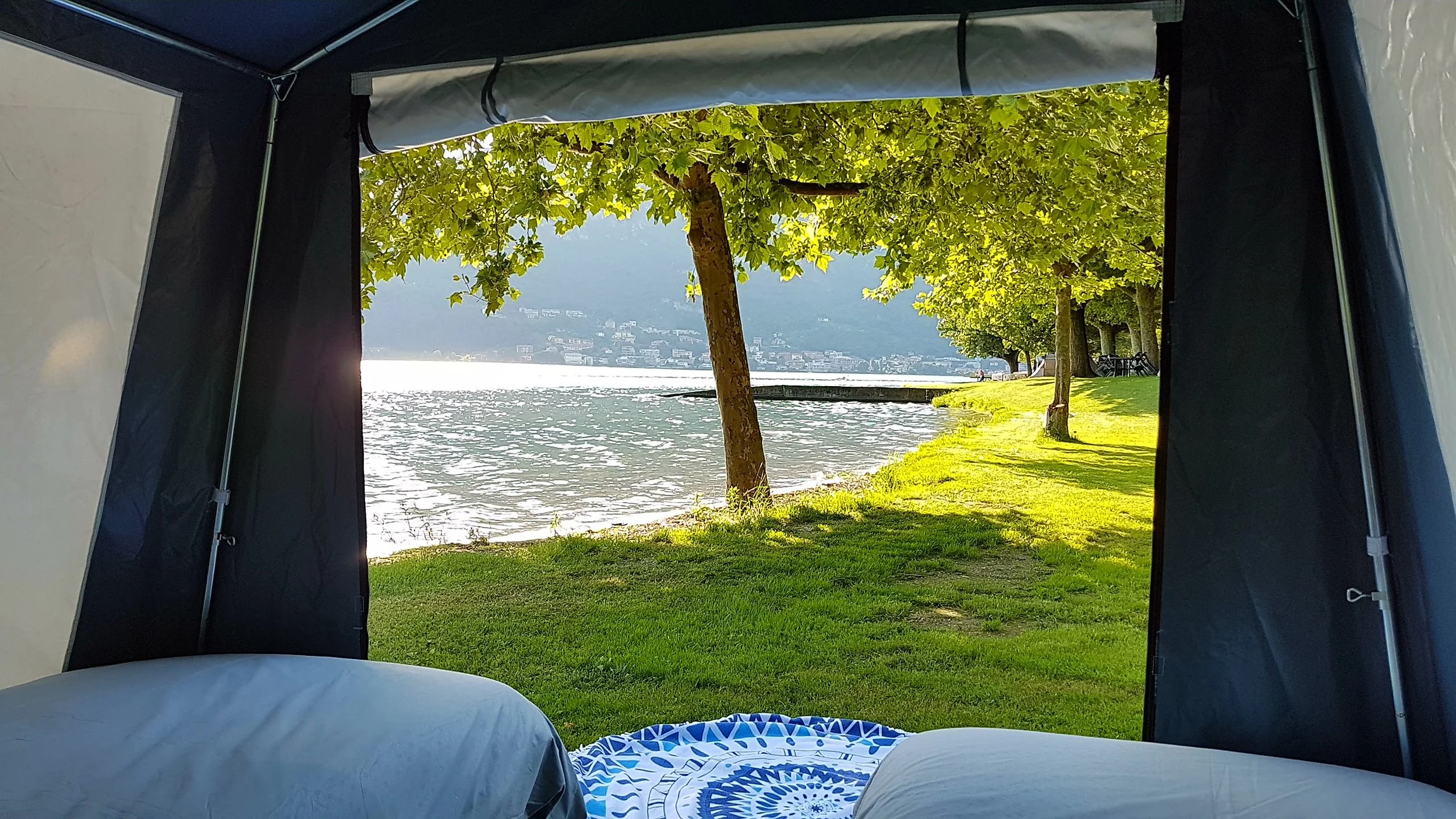 Je verblijft in een sportieve Falco familietent. De tent is voorzien van een koelkast en biedt voldoende ruimte om binnen aan tafel te eten of om samen een spelletje te spelen. De tent is standaard uitgerust met vier slaapplaatsen. Een vijfde slaapplaats kan toegevoegd worden.